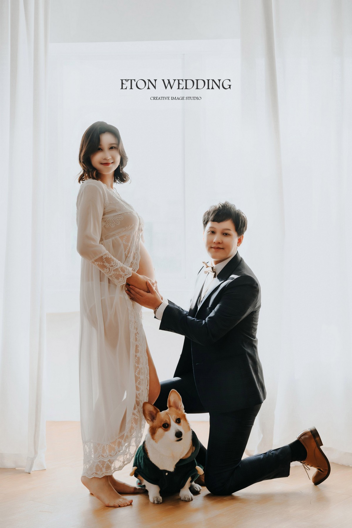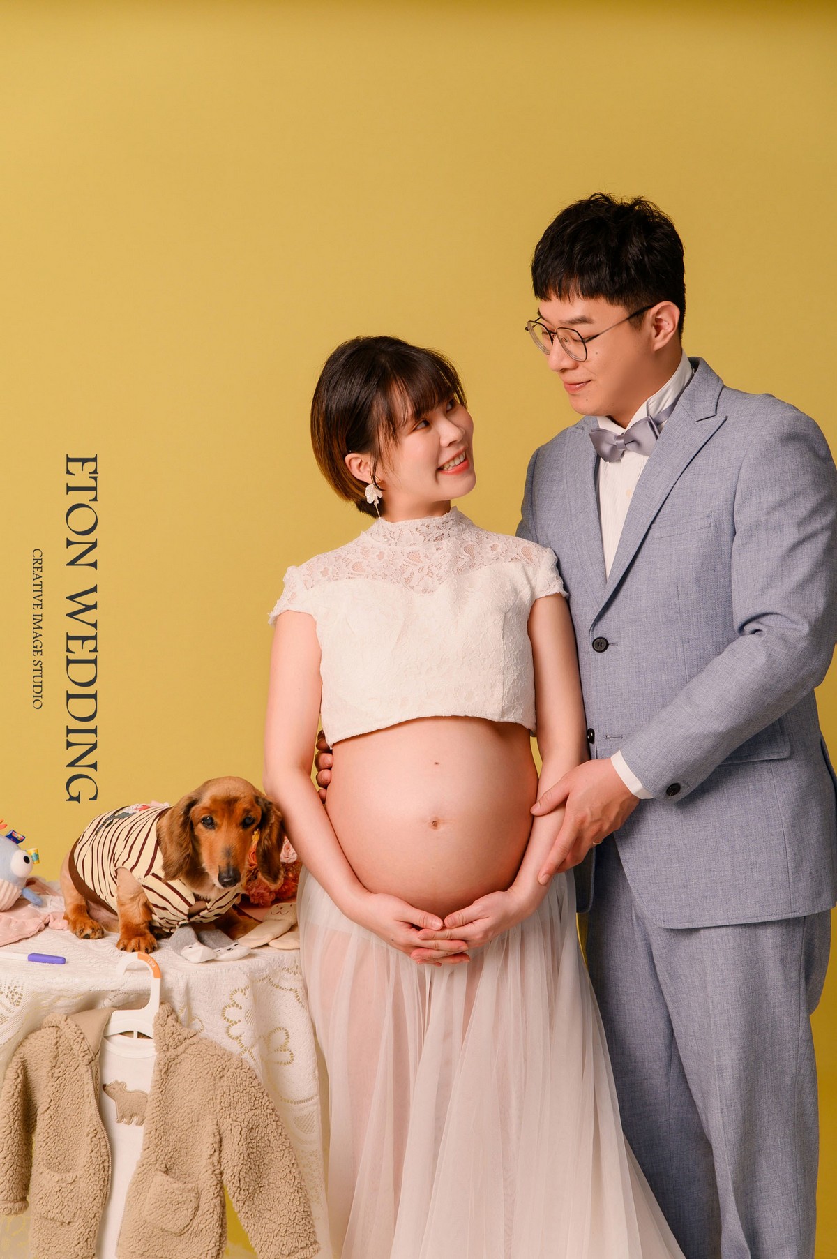 棚拍孕婦寫真,老公、小孩、寵物溫馨同框