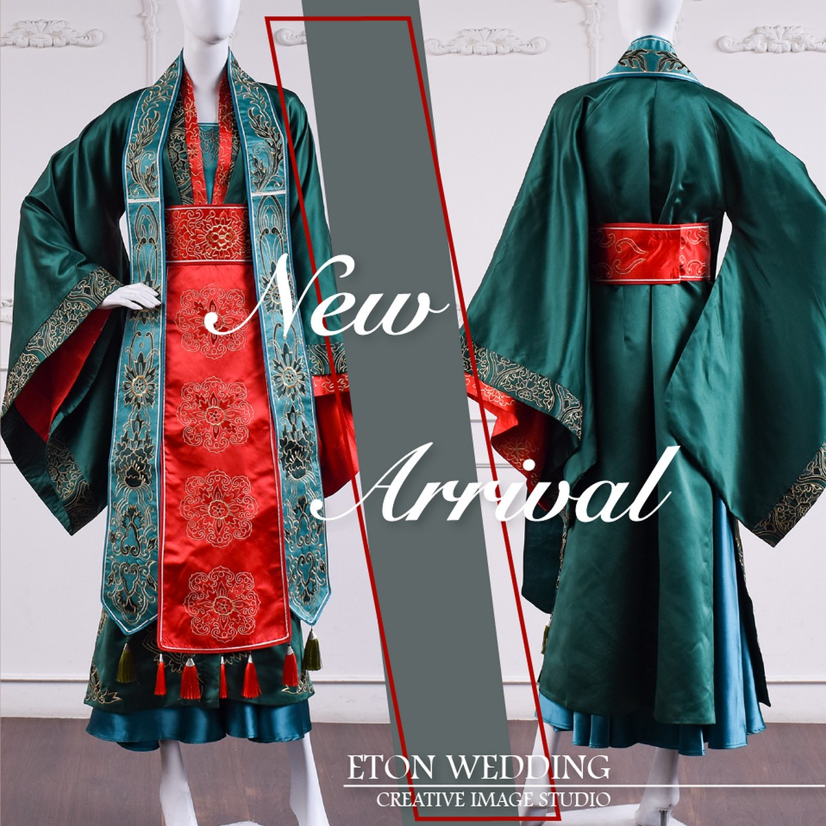 這件這件紅綠對襟襦裙漢服婚紗也是用